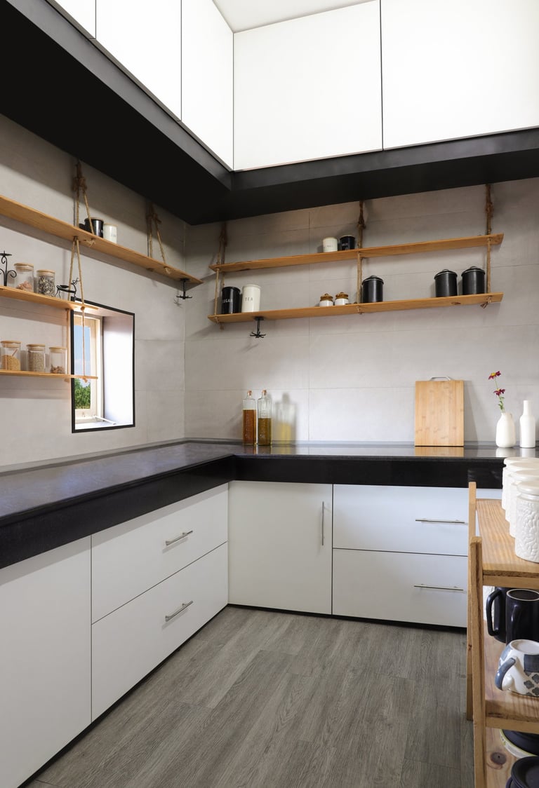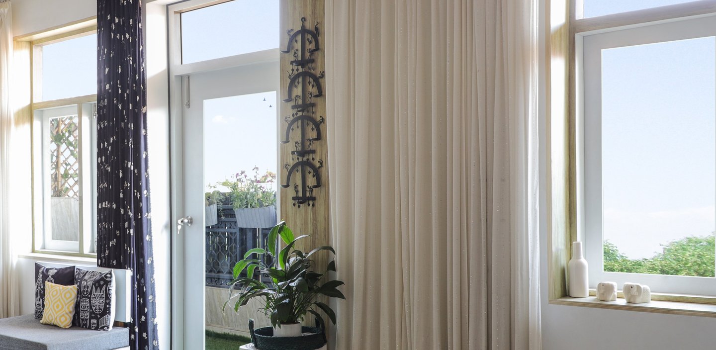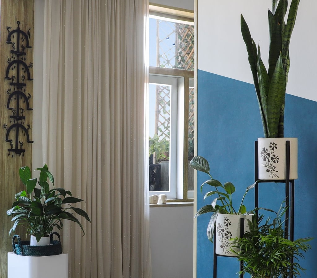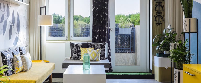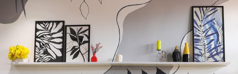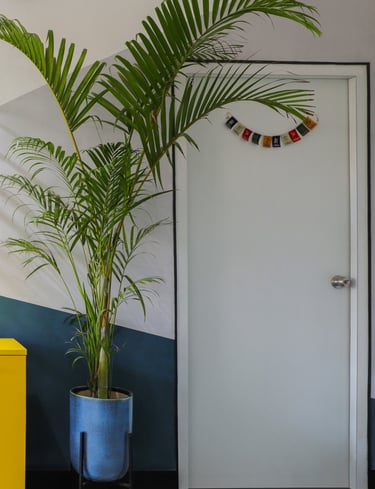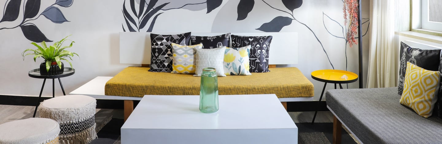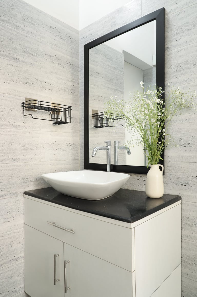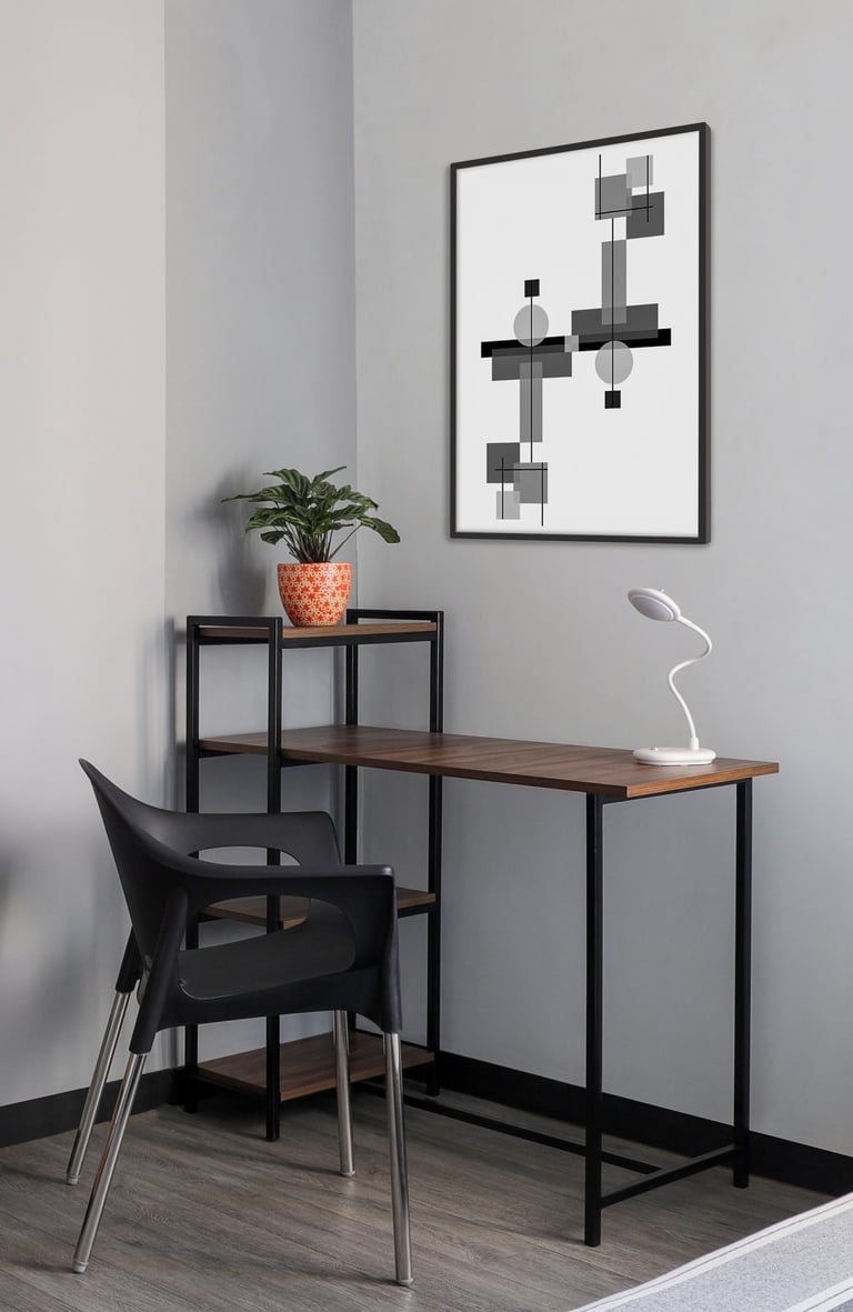 This beautifully designed home interior reflects a seamless blend of contemporary elegance and vibrant character. Bold artistic elements—such as striking murals, geometric and abstract artworks, and dynamic accent walls—create captivating focal points throughout the living spaces. Warm touches of mustard yellow, rich wood accents, and lush indoor plants balance the clean white, grey, and black palette, adding depth and personality to each room. The thoughtfully designed L-shaped kitchen and sleek bathroom showcase minimalist sophistication with crisp cabinetry, textured tiles, and refined fixtures, while the bedrooms offer serene retreats with calming tones, built-in storage, and subtle décor details. A stylish gallery passage, cosy seating nooks, and a functional study corner further enhance the home’s versatility. Bathed in abundant natural light, every space feels airy, inviting, and harmoniously connected in a modern yet warm living environment.