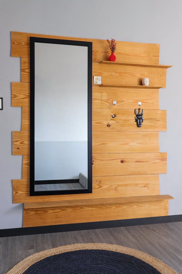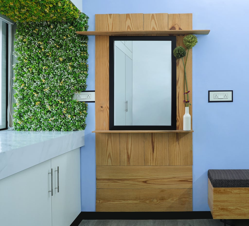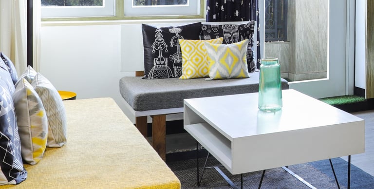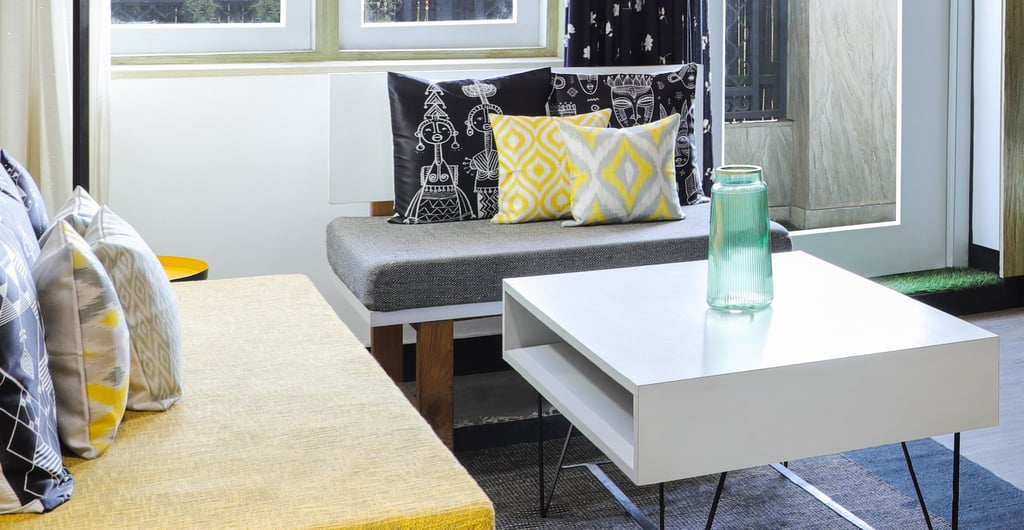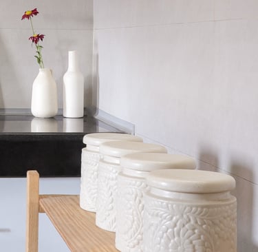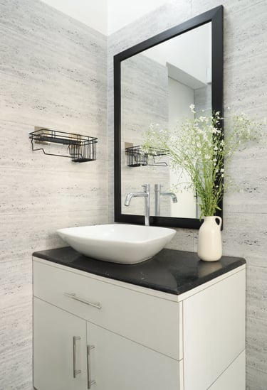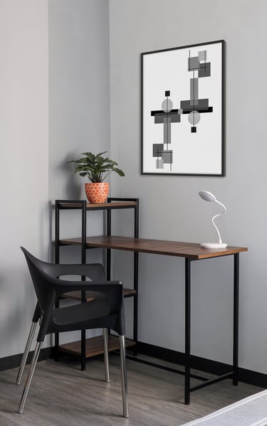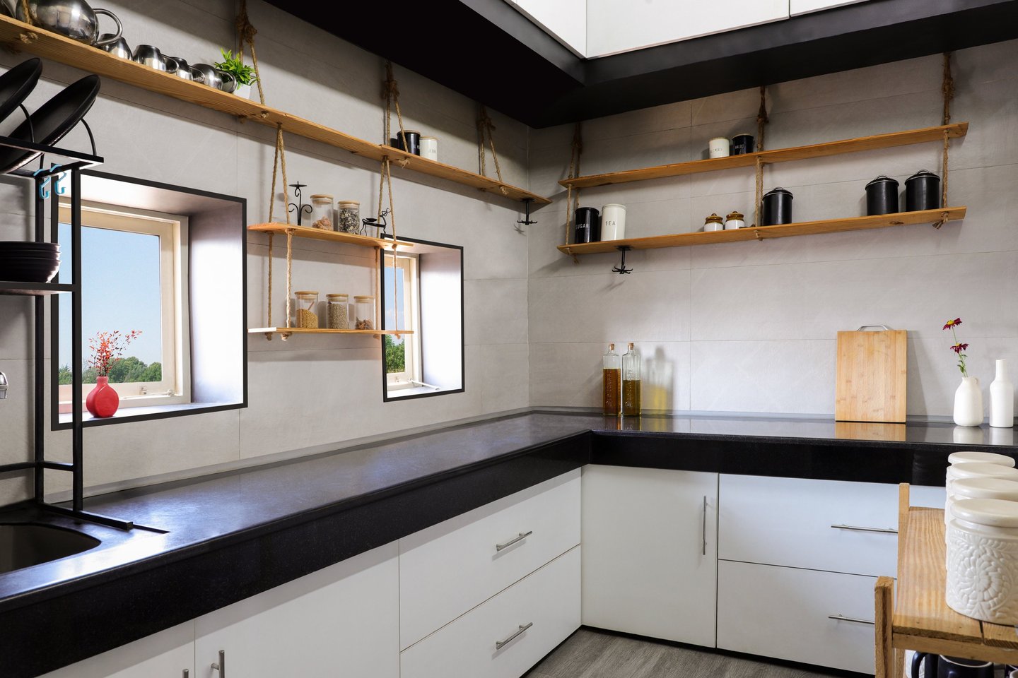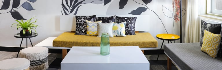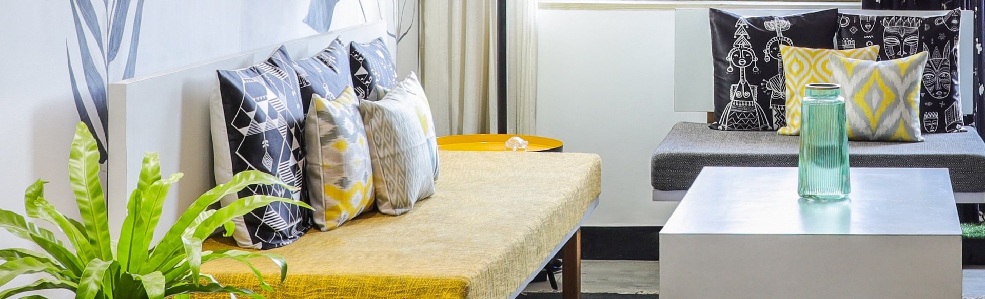 This beautifully designed home interior reflects a seamless blend of contemporary elegance and vibrant character. Bold artistic elements—such as striking murals, geometric and abstract artworks, and dynamic accent walls—create captivating focal points throughout the living spaces. Warm touches of mustard yellow, rich wood accents, and lush indoor plants balance the clean white, grey, and black palette, adding depth and personality to each room. The thoughtfully designed L-shaped kitchen and sleek bathroom showcase minimalist sophistication with crisp cabinetry, textured tiles, and refined fixtures, while the bedrooms offer serene retreats with calming tones, built-in storage, and subtle décor details. A stylish gallery passage, cosy seating nooks, and a functional study corner further enhance the home’s versatility. Bathed in abundant natural light, every space feels airy, inviting, and harmoniously connected in a modern yet warm living environment.