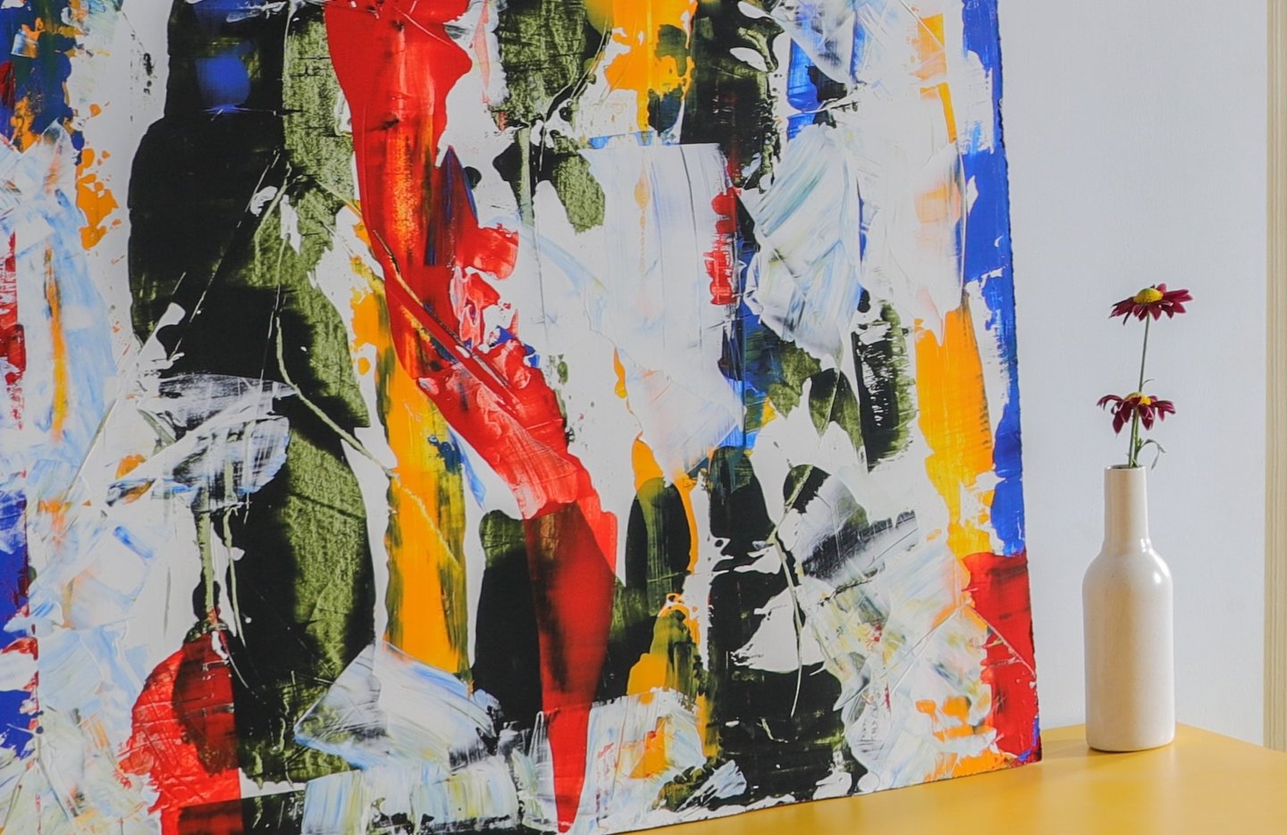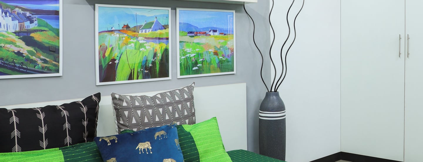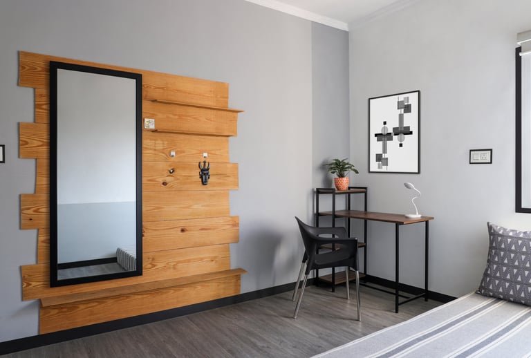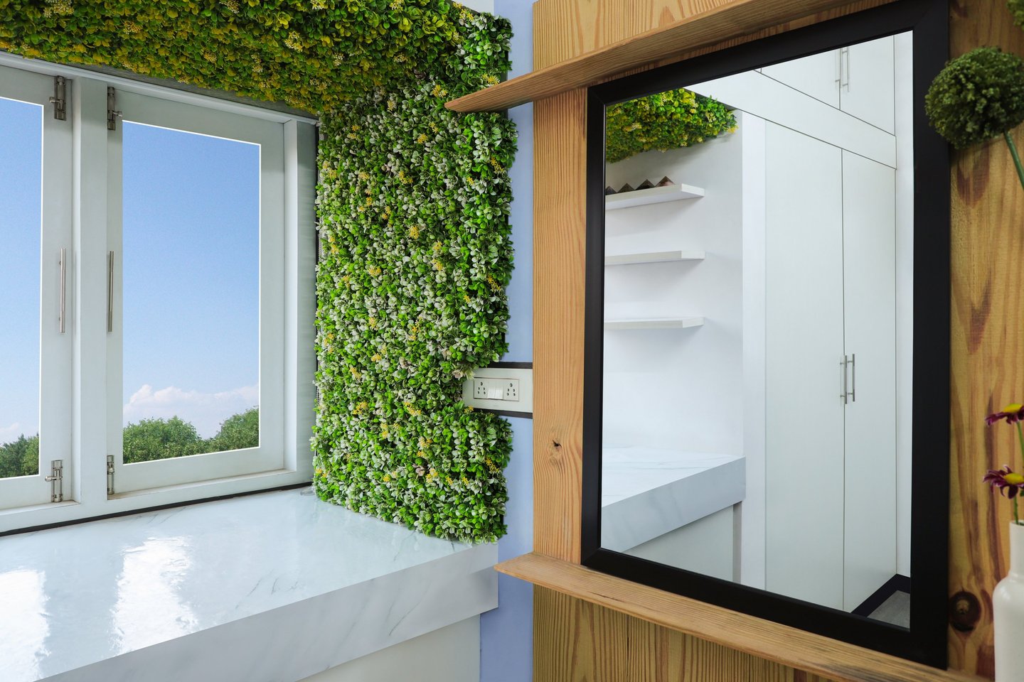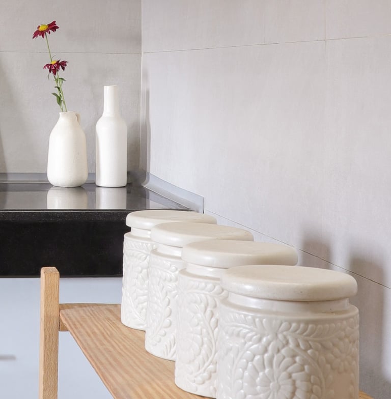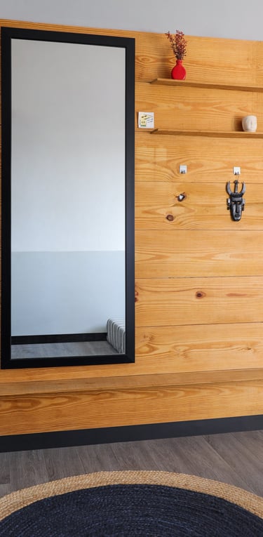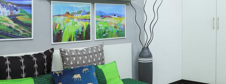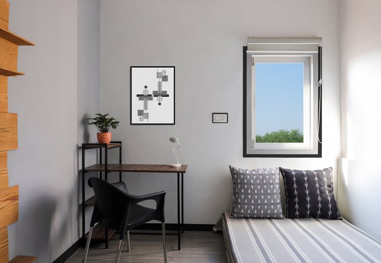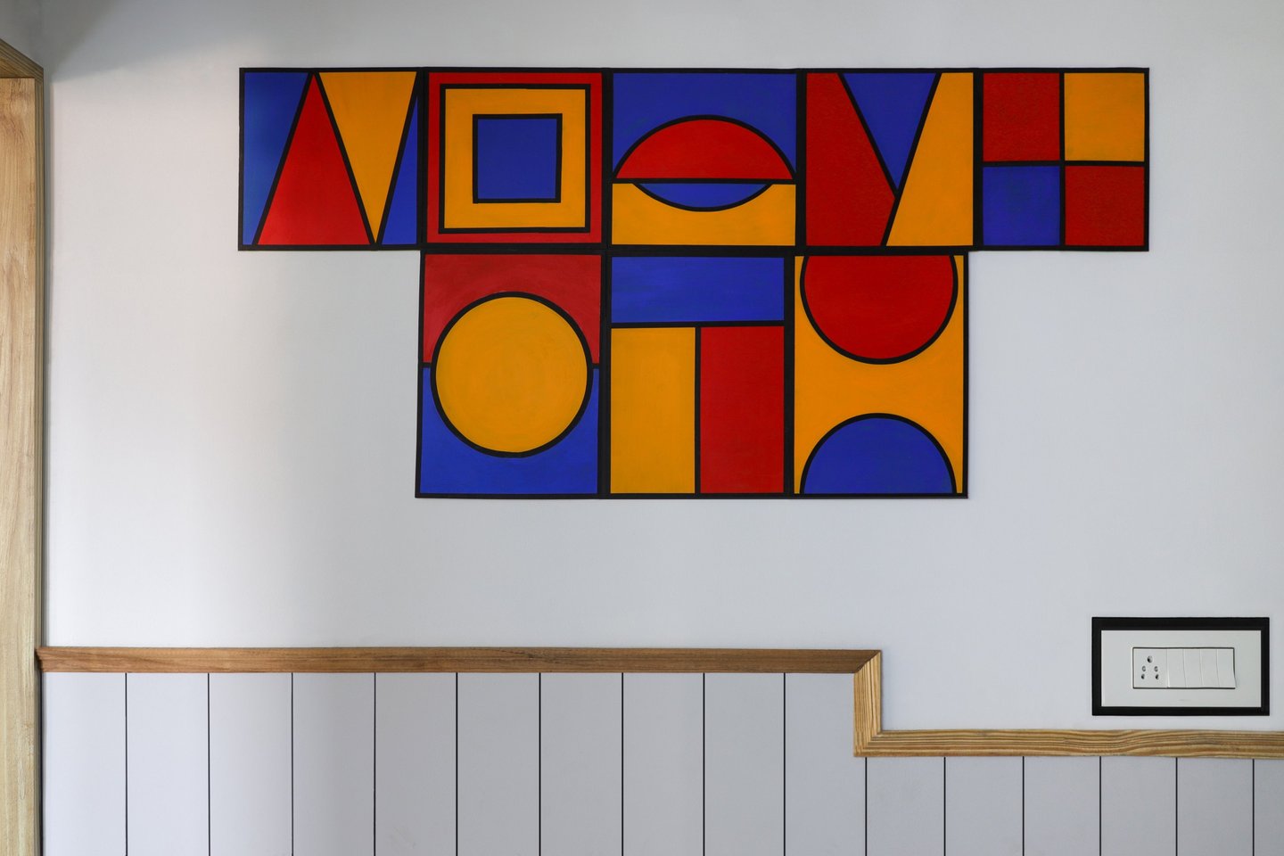 This beautifully designed home interior reflects a seamless blend of contemporary elegance and vibrant character. Bold artistic elements—such as striking murals, geometric and abstract artworks, and dynamic accent walls—create captivating focal points throughout the living spaces. Warm touches of mustard yellow, rich wood accents, and lush indoor plants balance the clean white, grey, and black palette, adding depth and personality to each room. The thoughtfully designed L-shaped kitchen and sleek bathroom showcase minimalist sophistication with crisp cabinetry, textured tiles, and refined fixtures, while the bedrooms offer serene retreats with calming tones, built-in storage, and subtle décor details. A stylish gallery passage, cosy seating nooks, and a functional study corner further enhance the home’s versatility. Bathed in abundant natural light, every space feels airy, inviting, and harmoniously connected in a modern yet warm living environment.